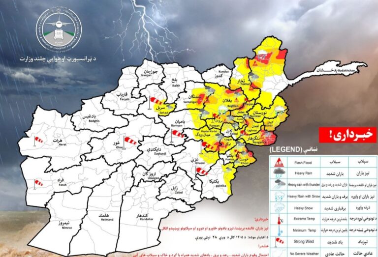 خبرگزاری پیگرد: کابل نوشته شده توسط: شمین نجرابی ۲۸ حمل، ۱۴۰۵ ️ریاست هواشناسی وزارت ترانسپورت و هوانوردی اعلام کرده است...