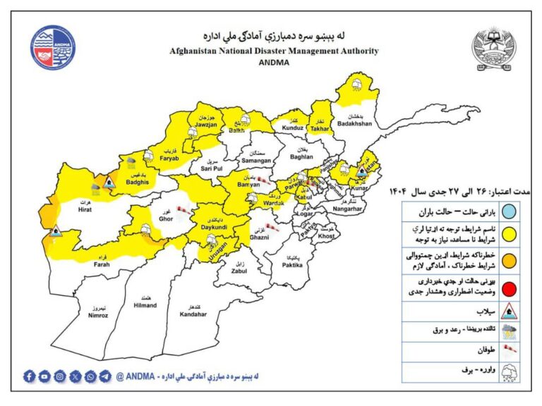 خبرگزاری پیگرد-افغانستان نوشته شده توسط - حسنا شمسی پنجشنبه، ۲۵ جدی ۱۴۰۴ ریاست هواشناسی وزارت ترانسپورت و هوانوردی کشور و...