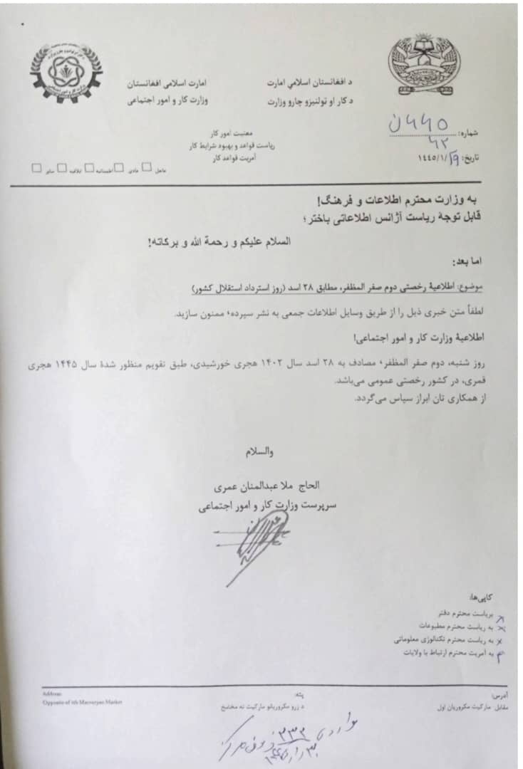 خبرگزاری پیگرد کابل افغانستان نوشته شده توسط:محمد محمدی پنجشنبه ۲۸ اسد ۱۴۰۲ وزارت کار و امور اجتماعی امارت اسلامی روز...