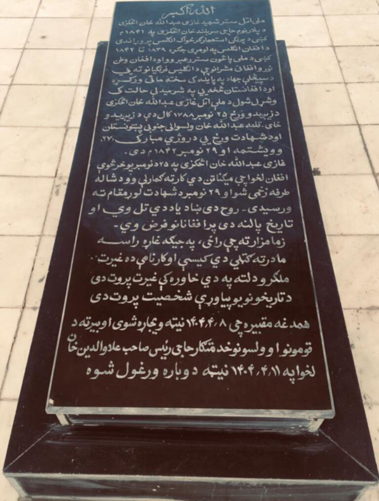 خبرگزاری پیگرد _کابل افغانستان نوشته شده توسط خبرگزاری پیگرد شنبه ۱۴ ، سرطان ۱۴۰۴ کابل – سنگنوشتهٔ مقبره غازی عبدالله...