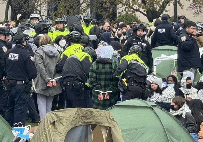 بهگفته شاهدان عینی، دستکم ۴۰ تا ۵۰ دانشجو با دستان بستهشده با بندهای پلاستیکی، توسط نیروهای پولیس نیویورک (NYPD) به موترها و بسهای پولیس منتقل شدند. همزمان، پولیس با یورش به ساختمان ششطبقه کتابخانه باتلر (Butler Library) در تلاش برای بیرونراندن دیگر معترضانی بود که از ترک محل خودداری کرده بودند.