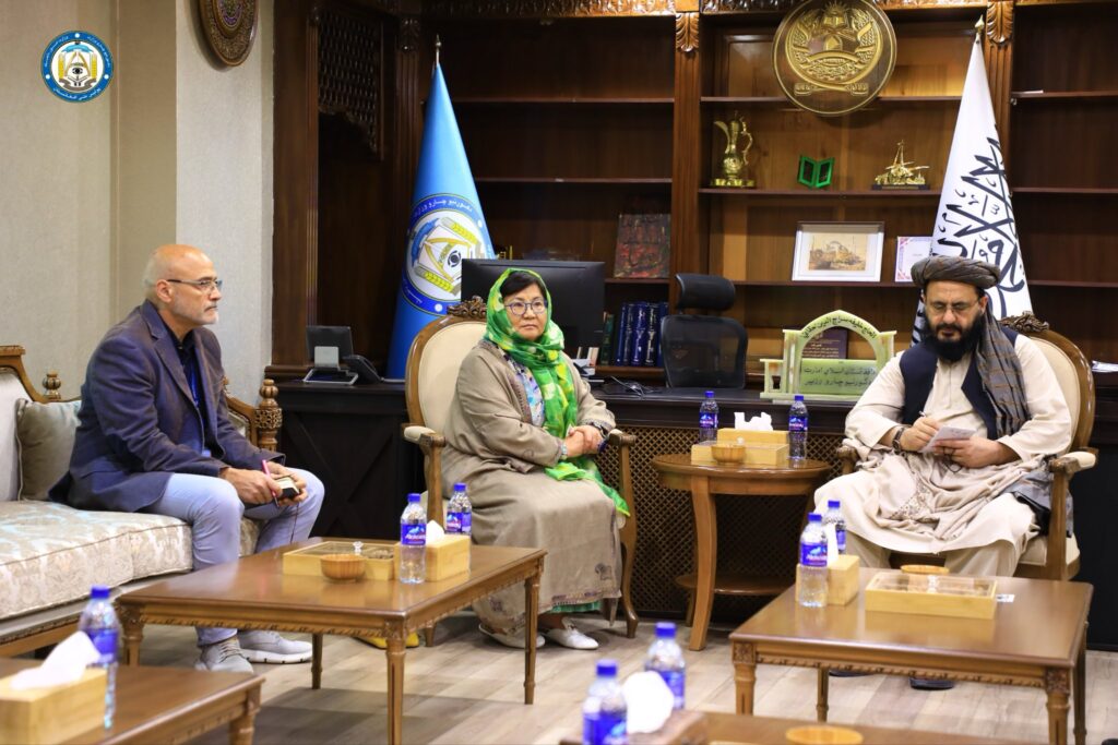 مولوی محمدنبی عمری، معاون اول وزارت امور داخله، پیش از چاشت امروز در دفتر کارش با خانم رزا اوتونبایوا، نماینده ویژه سازمان ملل متحد برای افغانستان، دیدار و گفتگو کرد.