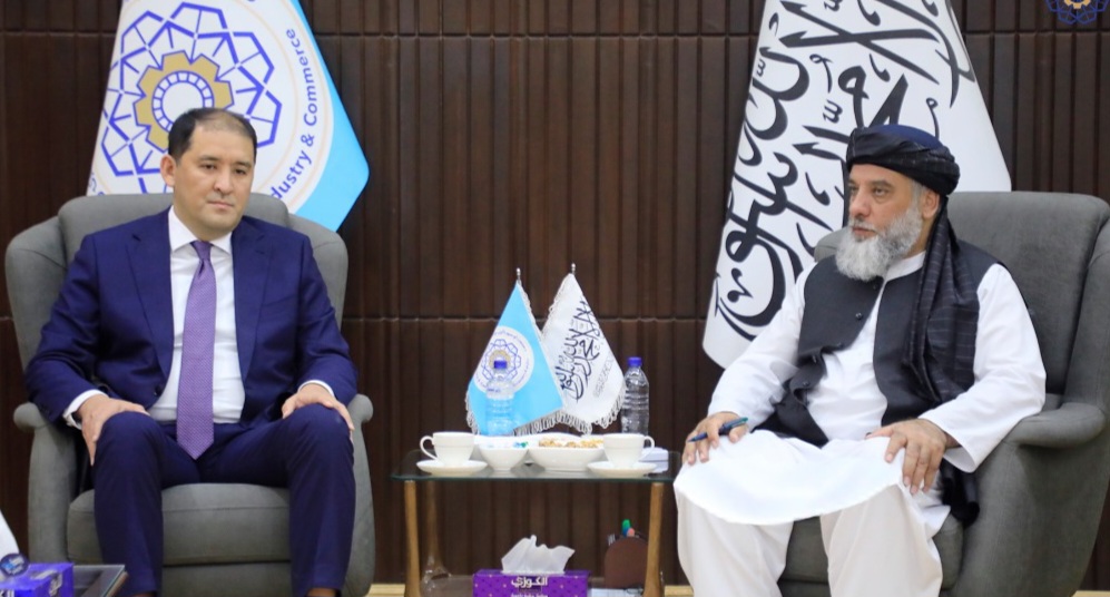 محترم الحاج نورالدین عزیزی، وزیر صنعت و تجارت امارت اسلامی افغانستان، عصر امروز با آقای جانبیک تایجاناف، معین وزارت ترانسپورت، و آقای ایران شارخان، معین وزارت صنعت و ساختمان جمهوری قزاقستان، در حضور آقای گازیز اکباسوف، سفیر آن کشور مقیم کابل، دیدار و گفتگو کرد.