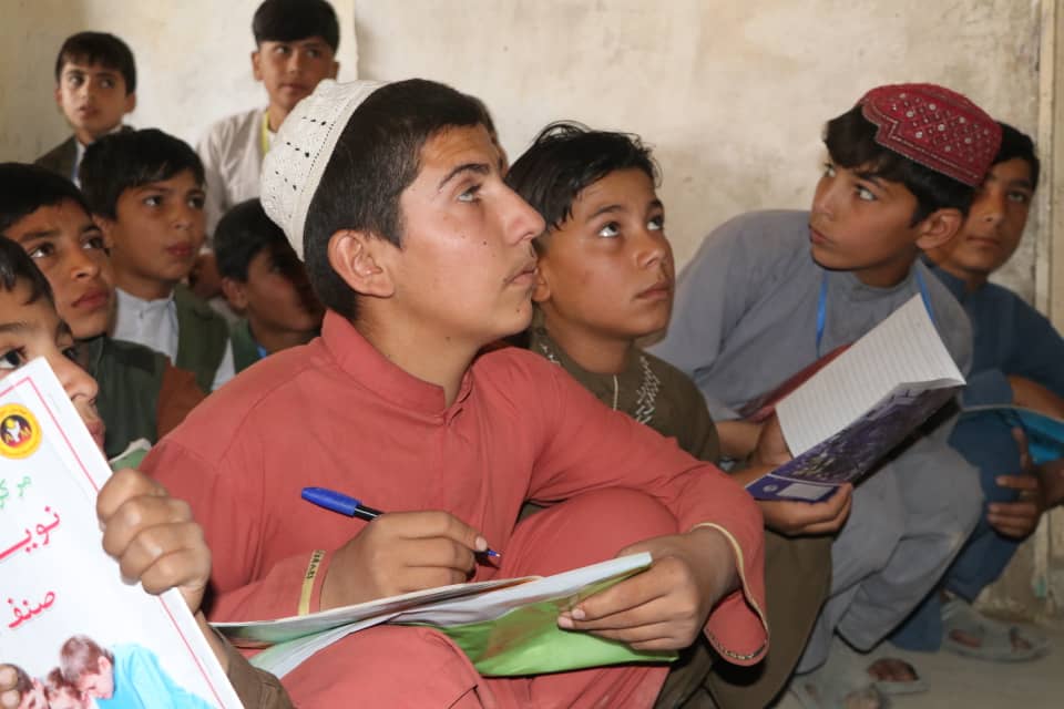 معلمی در ولایت بلخ به همکاری یک نهاد خیریه برای ۲۰۰ تن از متعلمین زمینه اموزش را فراهم کرده