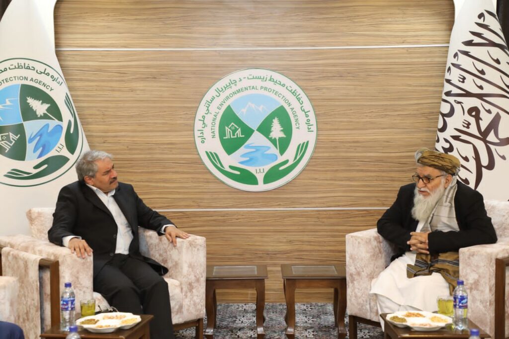 مولوی مطیعالحق خالص، رئیس عمومی اداره ملی حفاظت محیط زیست، در دفتر کارش با لاهیجانزاده، معاون وزارت محیط زیست جمهوری اسلامی ایران، و هیأت همراه وی دیدار نمود.