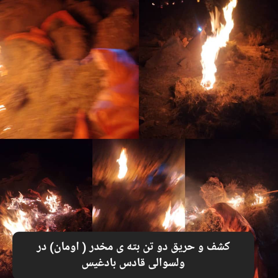 مسوولان قومندانی امنیه ولایت بادغیس از کشف و به آتش کشیدن دو تُن بته مخدر موسوم به (اومان) در ولسوالی قادس این ولایت خبر دادهاند.