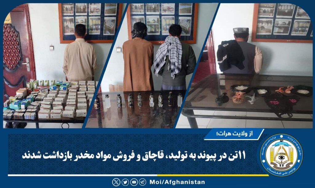 نیروهای پولیس مبارزه با مواد مخدر قوماندانی امنیه ولایت هرات، ۱۱ تن را در پیوند به قاچاق، تولید و فروش مواد مخدر از مربوطات این ولایت بازداشت کردند.