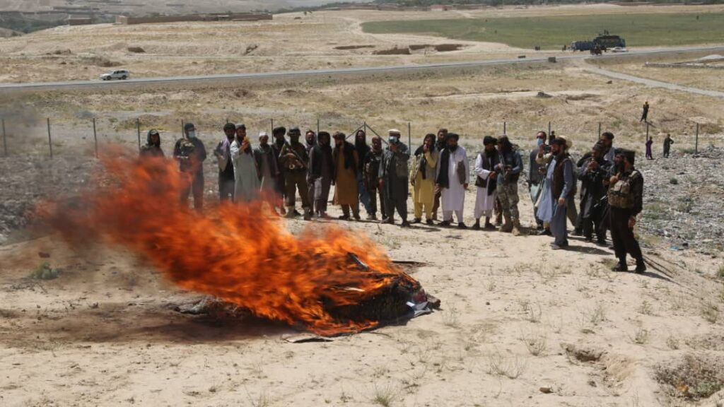 خبرنامه می افزاید: این مواد در حضور داشت هیات مختلط در ساحهی دشت شریزار کره تازه مرکز این ولایت به آتش کشیده شد.
