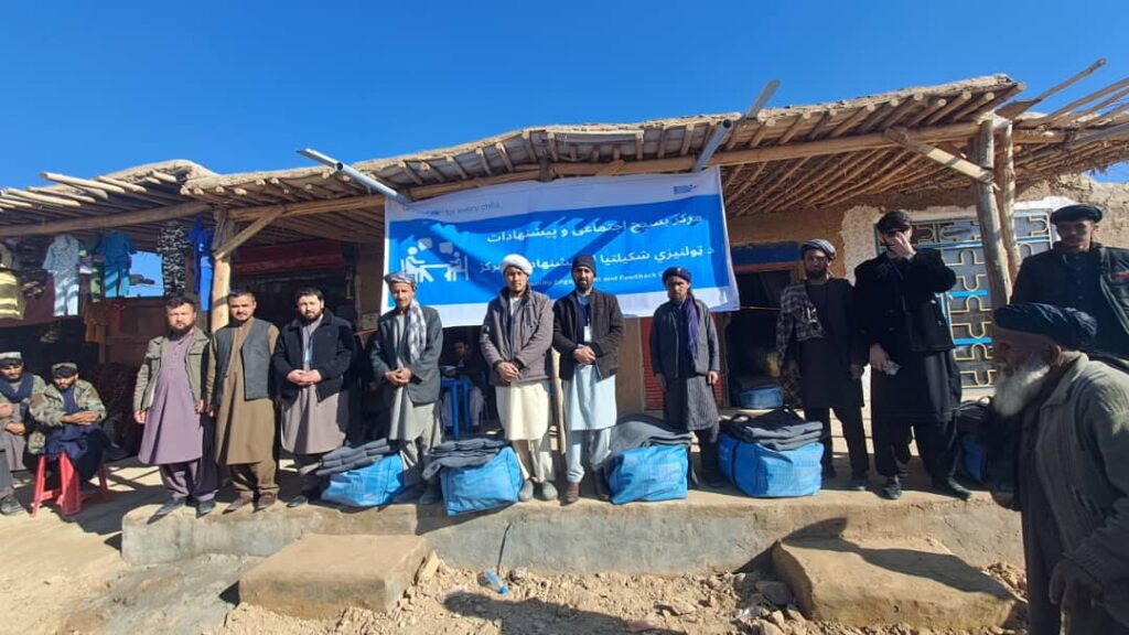صندوق حمایت از کودکان سازمان ملل متحد یا (یونیسف) به همکاری تخنیکی موسسه جک و در هماهنگی با ریاست احیا وانکشاف دهات ولایت سمنگان برای 100 فامیل نیازمند البسه زمستانی توزیع نمود.