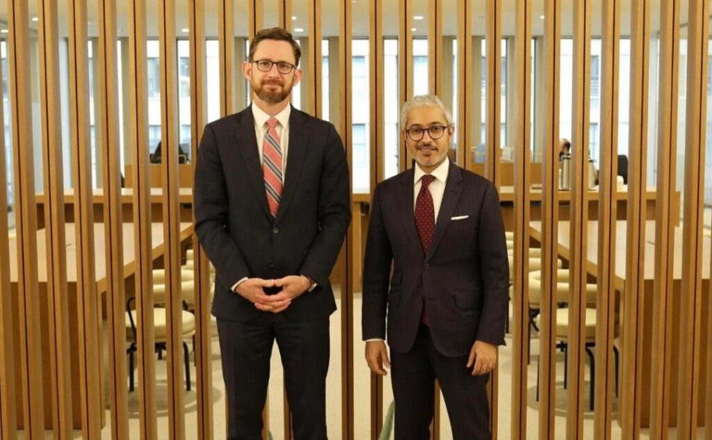 دیدار وگفتگو توماس وست نماینده ویژه ایالات متحده آمریکا برای افغانستان با معاون سفیر امارات متحده عربی درمورد توانمند سازی زنان افغانستان