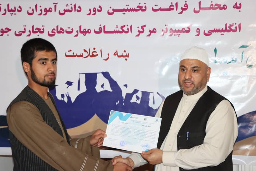در پایان برنامه جوانان که از مرکز انکشاف مهارت ها تجارتی فارغ شده بودند، توسط مولوی فیروز الدین منیب رئیس اطلاعات و فرهنگ سمنگان، مولوی ذبیح الله نورانی رئیس اطلاعات و فرهنگ ولایت بلخ ومسولین دفتر اکتید سند فراغت توزیع گردید.
