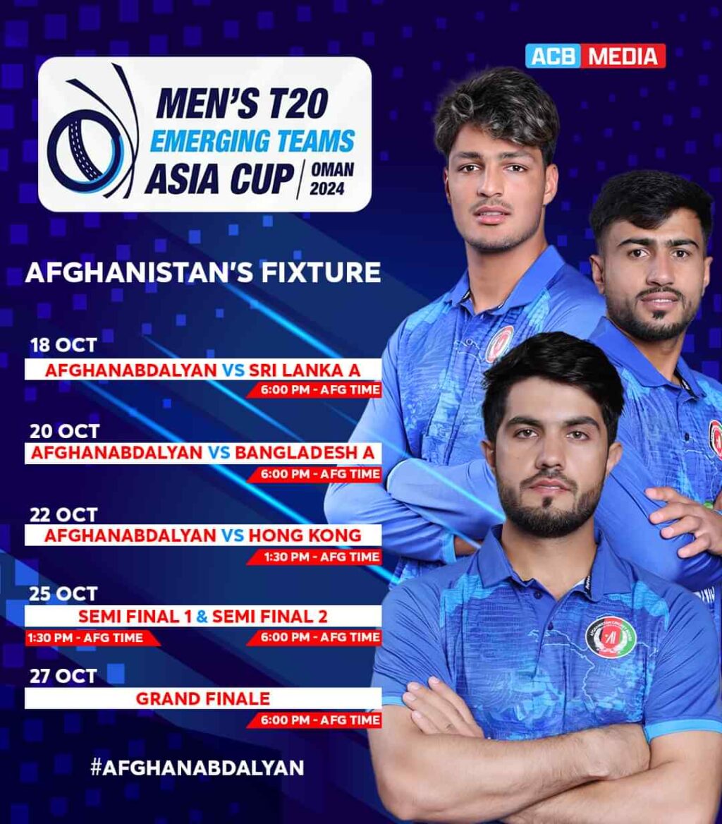 افغان ابداليان لوبډله به لومړي لوبه د روانې میلادي میاشتې په ۱۸ نيټه سريلانکا، دوهمه لوبه په ۲۰ نېټه بنګلاديش او وروستۍ لوبه ۲۲ نېټه ترسره کړي چې له دې لوبو وروسته به يوه لوبډله نيمه پای لوبې ته لار پېدا کړي.