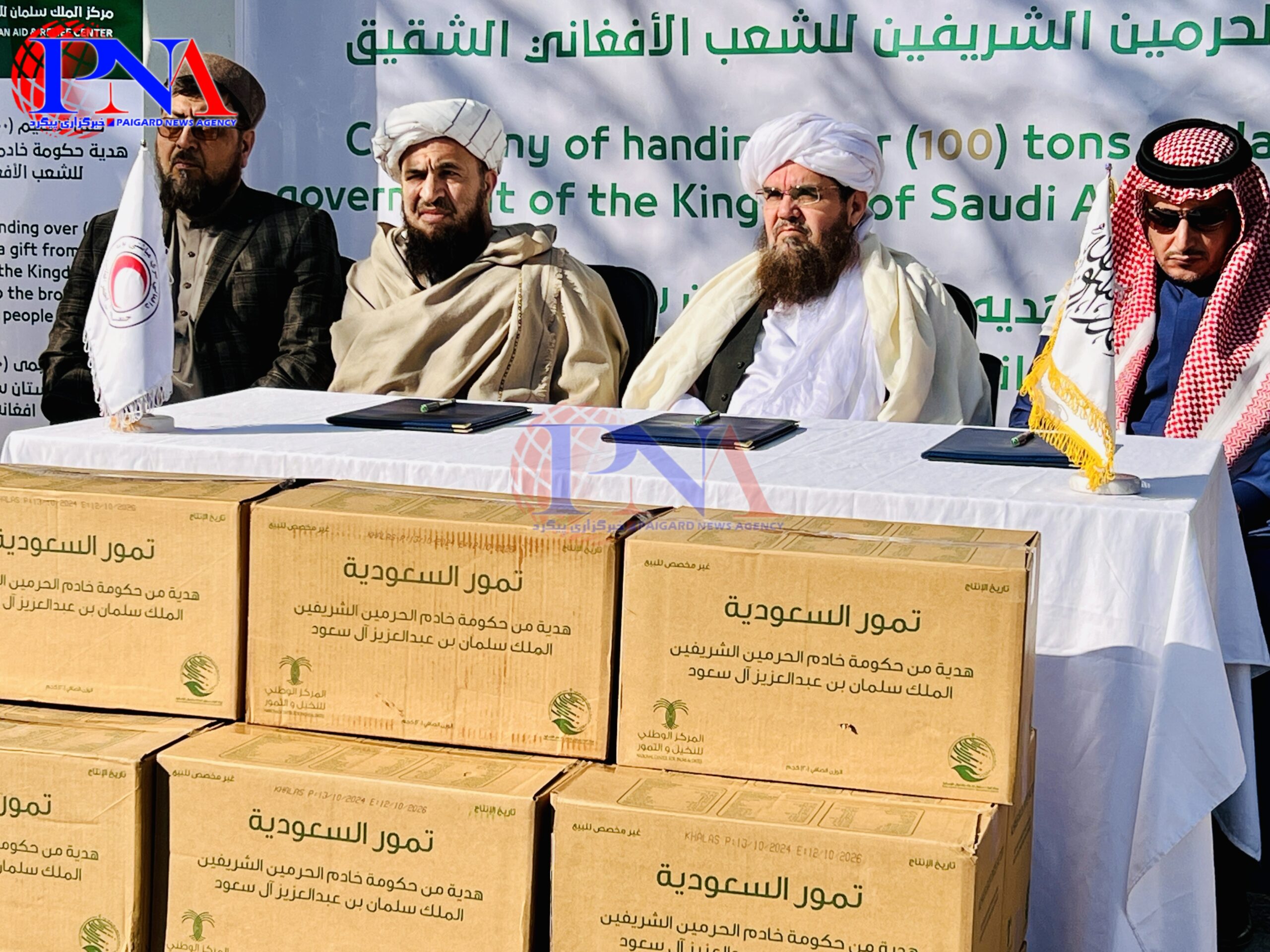 دولت شاهی عربستان سعودی امروز ( یکشنبه ۷ دلو ۱۴۰۳ ) در مراسم به مناسبت کمک های دوامدار این کشور، ۱۰۰ تُن خرما را برای کمک به خانوادههای نیازمند به جمعیت هلال احمر افغانی در کابل سپرد.